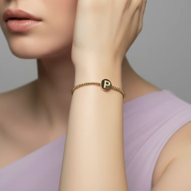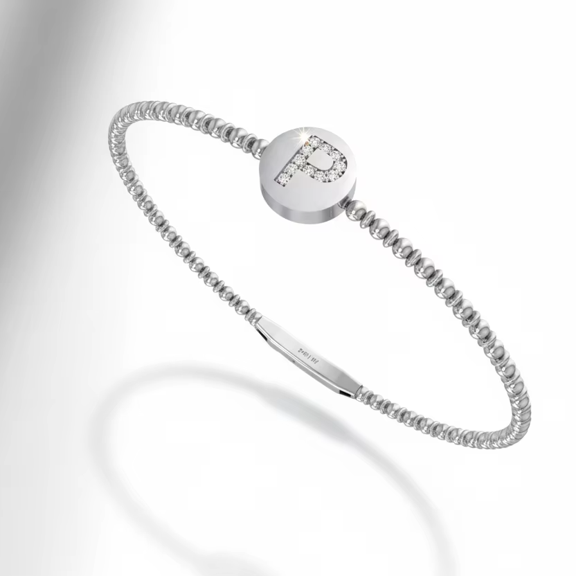Bracelet en or 14 carats et diamants avec initiale céleste perlée | Diamant taille brillant 0,07 carat
