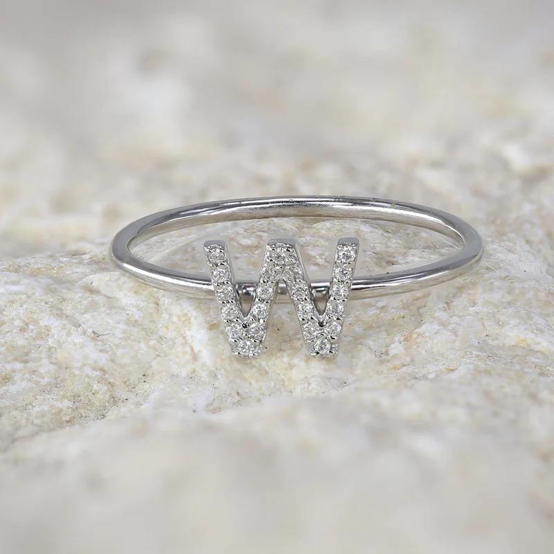 Bague initiale en or 14 carats avec diamant pour cadeau d'anniversaire, bague minimaliste avec diamant de laboratoire taille ronde pour cadeau de mariage