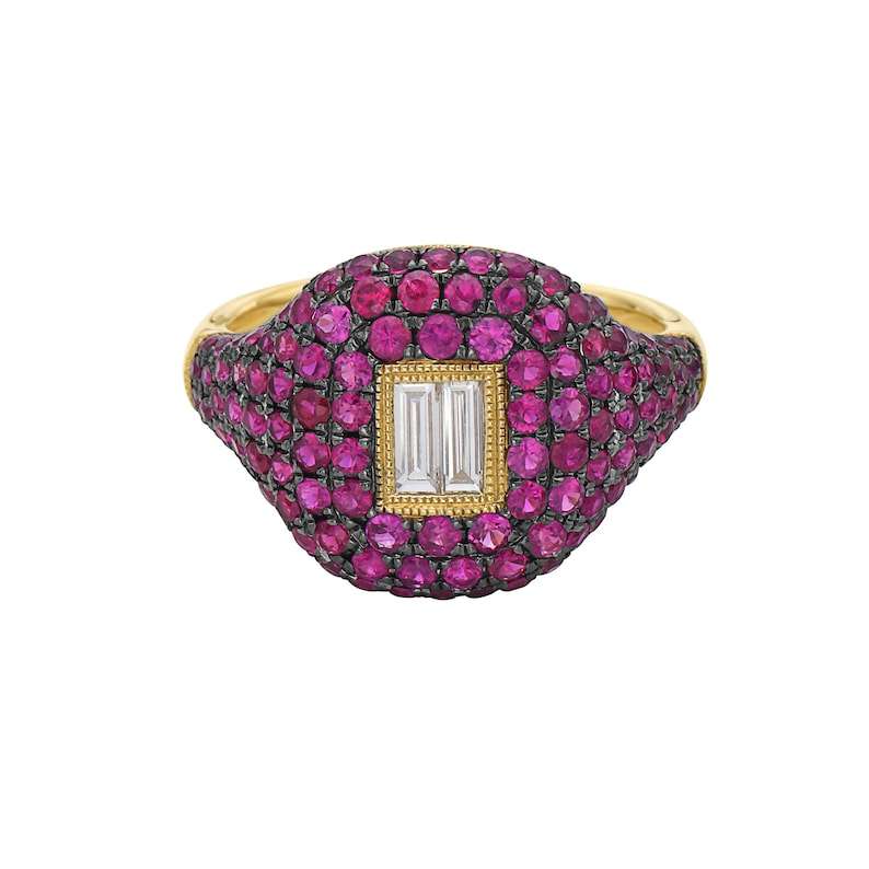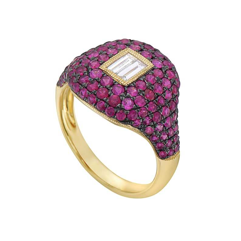 Bague diamant et rubis Bague de luxe en or massif 14K