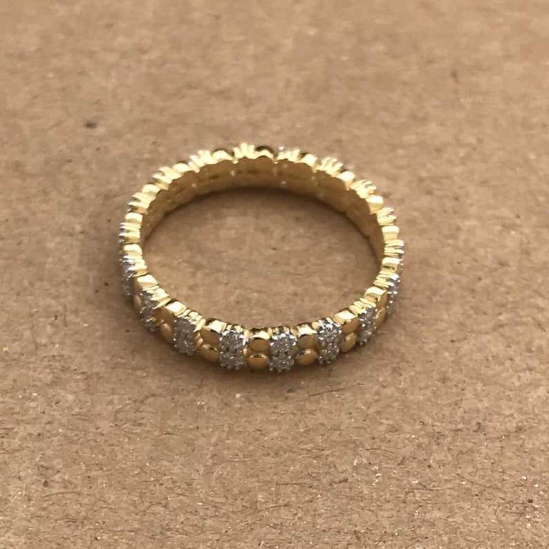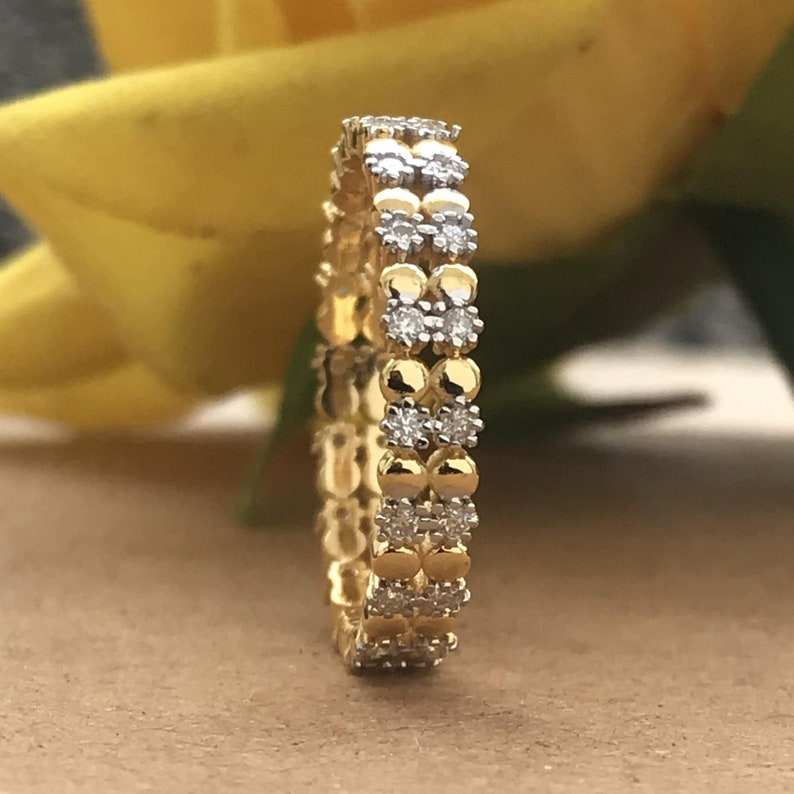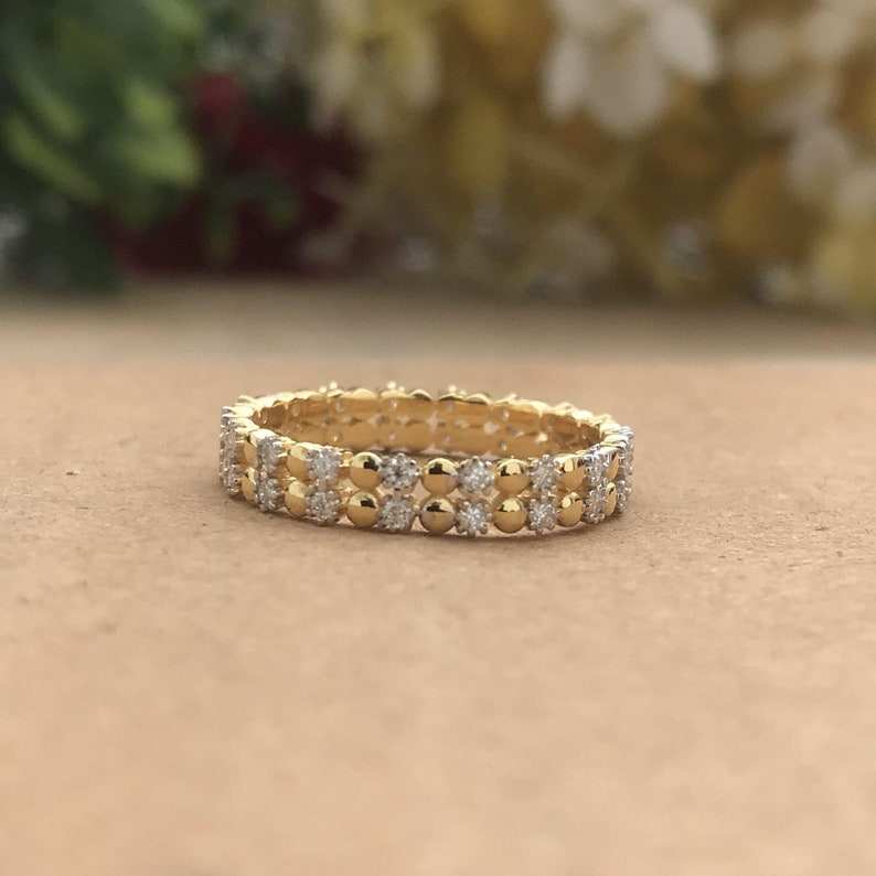 Bague éternelle à double rangée de diamants de laboratoire taille ronde, cadeau parfait pour un anniversaire de mariage pour femmes, bijoux fins en or 14 carats