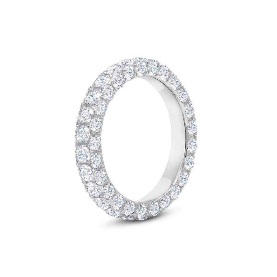 Alliance de mariage en or 14 carats, élégante, trois rangs de diamants pavés (naturels), fabrication de bijoux internationale, vente en gros et au détail OEM
