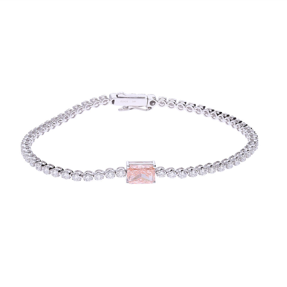 Bracelet tennis en or 14 carats avec diamant CVD cultivé en laboratoire F VVS VS, pierre centrale taille radiant rose, plaqué rhodium, classique, élégant, premium