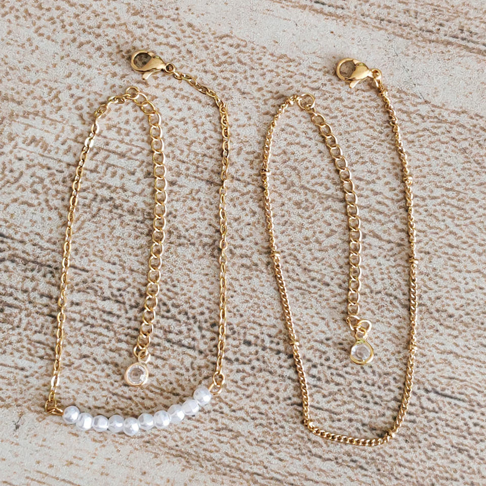 Bracelet superposé réglable en or rempli 14 carats, chaîne ovale mignonne, barre de perles, bracelets en or pour femmes