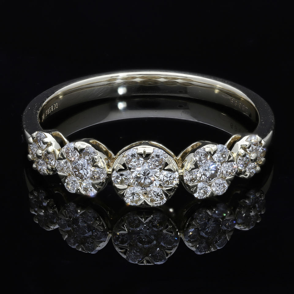 Bague en or 14 carats avec 5 motifs ronds 0.44CTW diamants naturels réglage micro-griffe étincelle classique