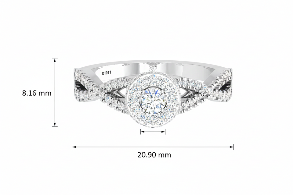 14K Gold & Natural Round Diamond Double Halo Split Shank Engagement Ring