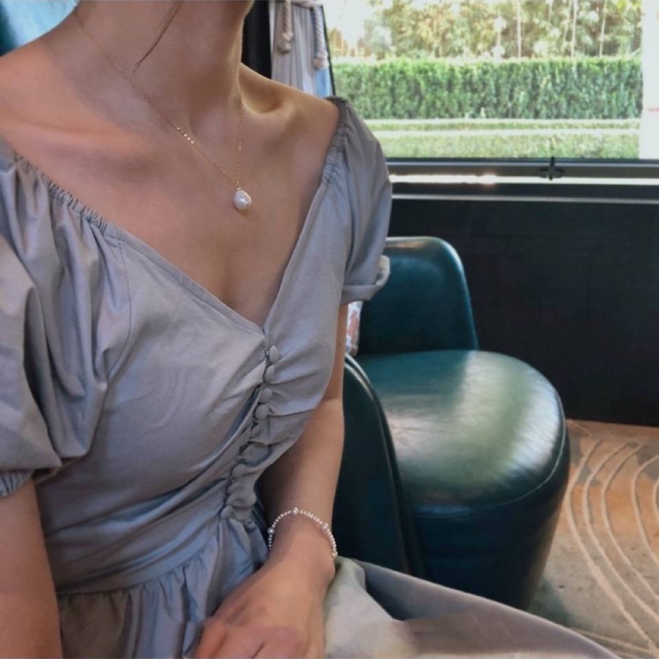Collier plaqué or 14 carats avec pendentif à perle unique, forme baroque Edison, cuir naturel froissé, chaîne de clavicule, collier de perles