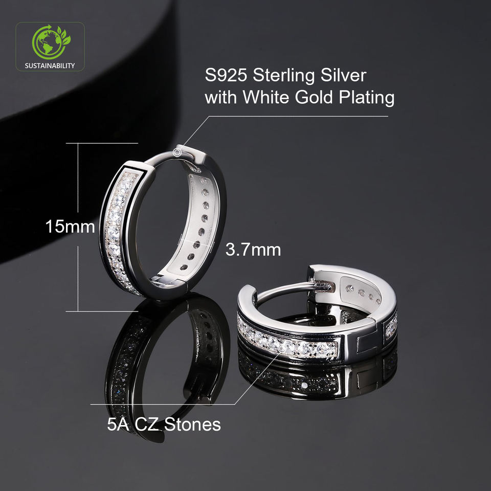 14K Gold Plated Round Hoop Iced Out Men Women Fine Jewelry Gift 925 Sterling Silver Zirconia 5A CZ Diamond 15mm Huggie Earrings