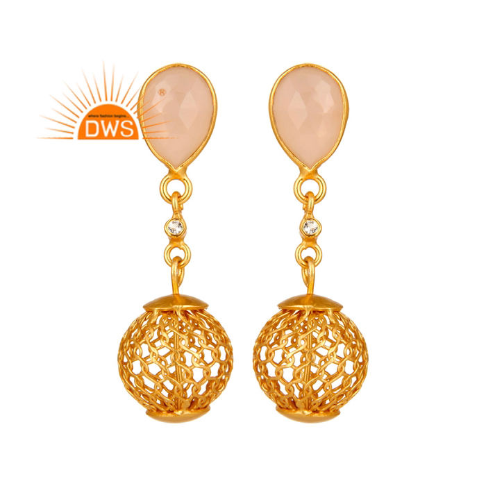 Boucles d'oreilles en argent sterling plaqué or 14 carats avec chaîne Boucles d'oreilles en calcédoine rose Bijoux en pierres précieuses en gros