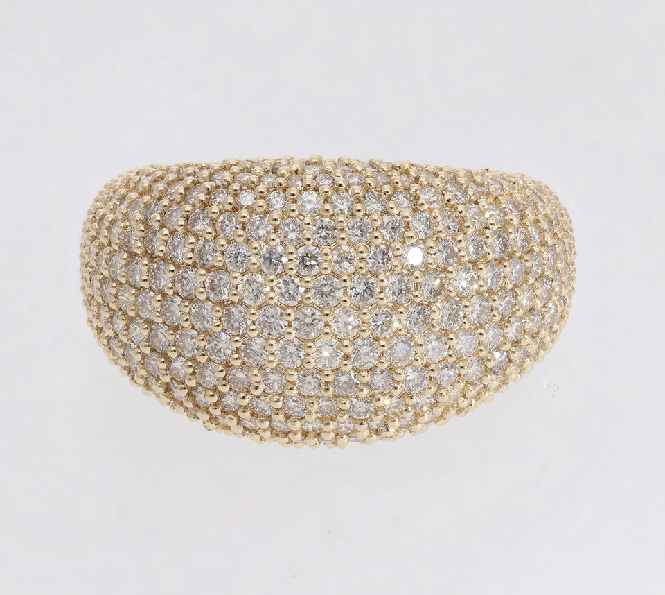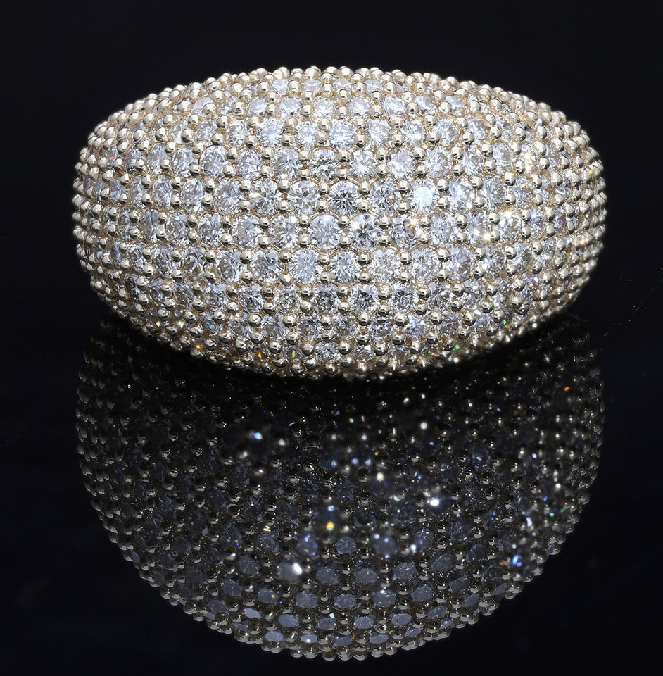 Bague dôme classique plaquée rhodium en or 14K sertissage pavé complet 4.02CTW diamants naturels Style micro perle broche brillance luxueuse