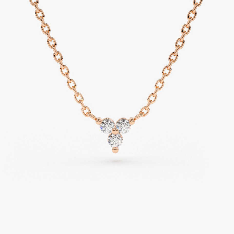 Minimaliste 14K Gold Cut Diamond Trio Cluster Collier Tous Les Jours Porter Femmes Trois Pierre Pendentif Bijoux