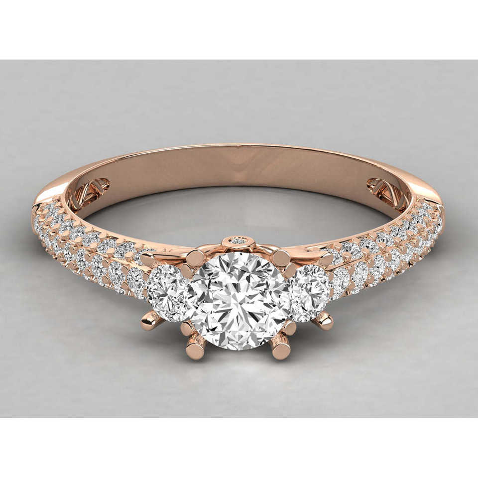 Bague pour femme en or 14 carats avec diamant solitaire, design brillant