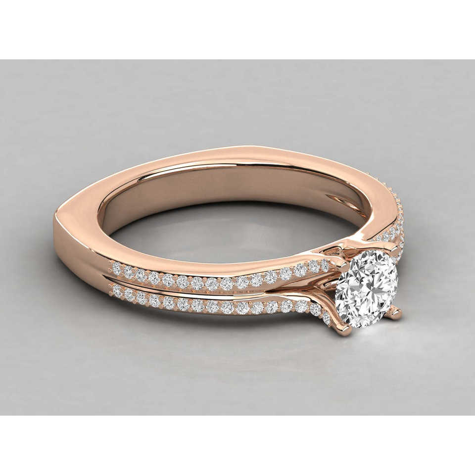 Bague solitaire en or 14 carats avec diamant cultivé, bijoux élégants et luxueux