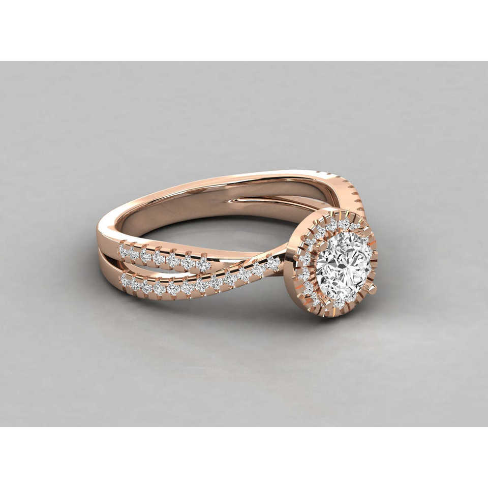 Bague pour femme en or 14 carats avec diamant solitaire rond de laboratoire, bagues en diamant brillant