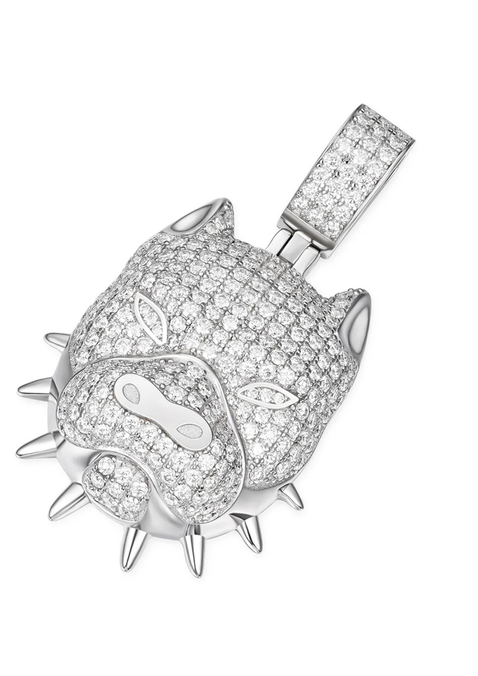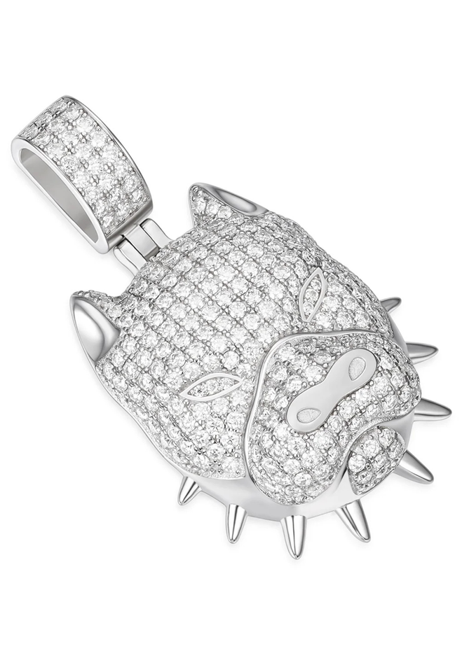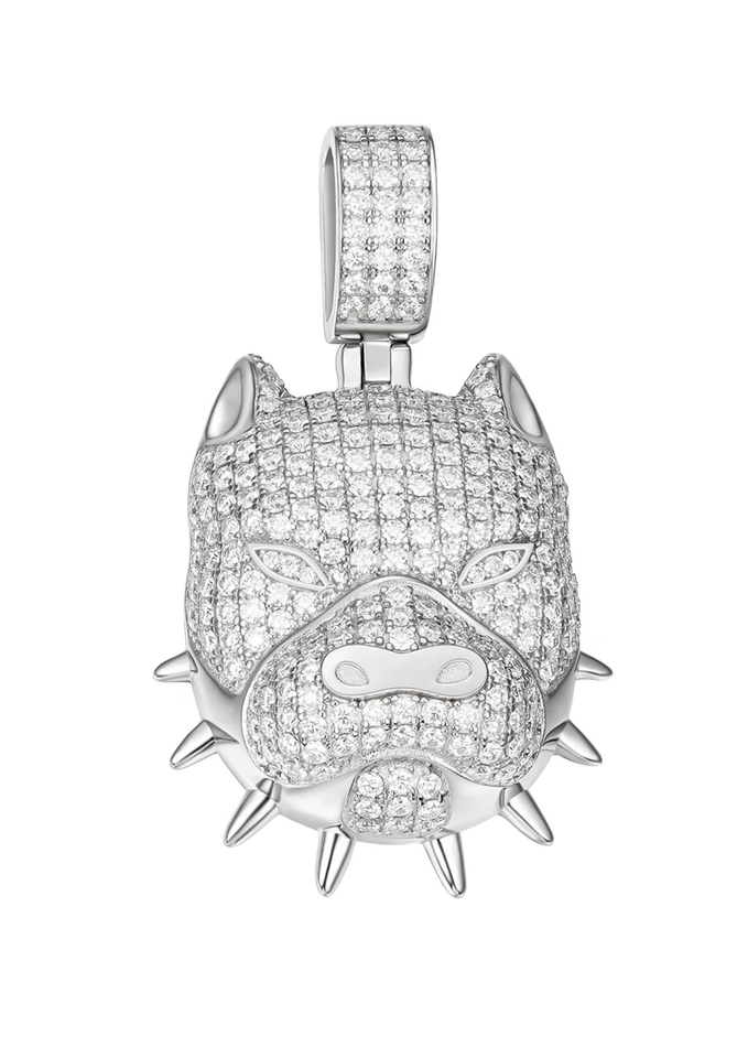 Pendentif Pitbull à pointes plaqué or 14 carats et rhodium avec pierres en moissanite pour les fêtes