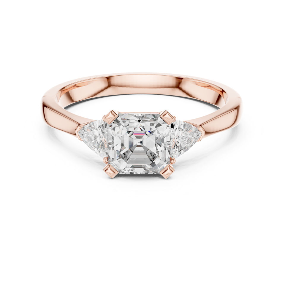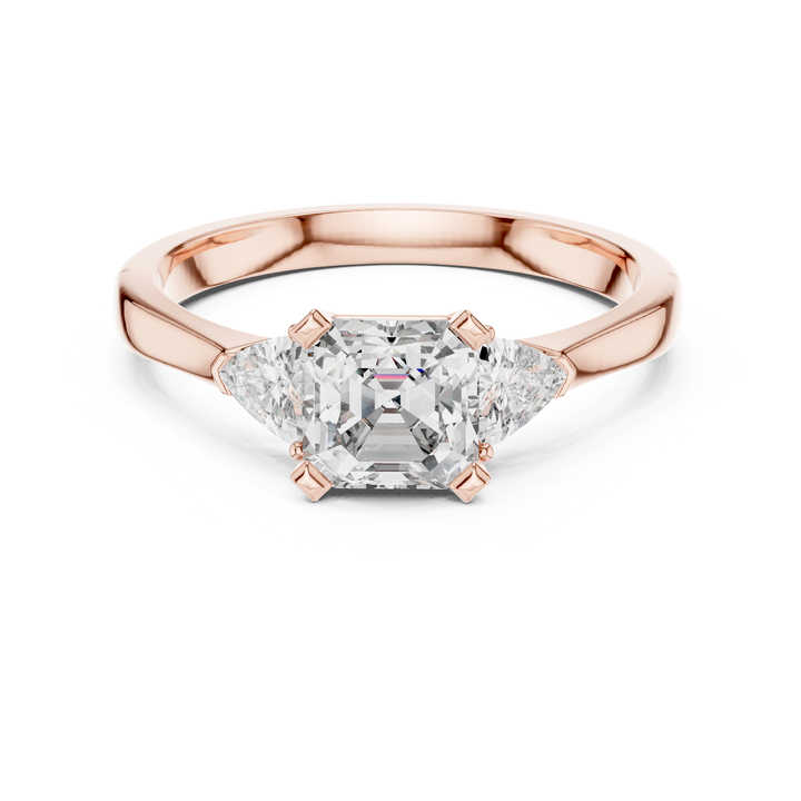 Bague en or rose 14 carats avec cluster de diamants de laboratoire taille émeraude pour femme | Tenue de fête pour anniversaire de fiançailles | Nouveau diamant cultivé 2 carats