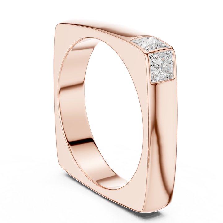 Bague solitaire classique pour homme en or rose 14 carats avec diamant de laboratoire taille princesse, sertissage minimaliste, élégance signature