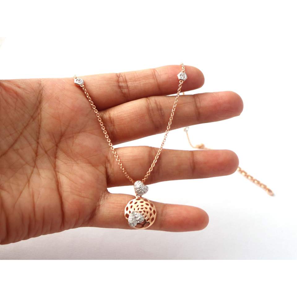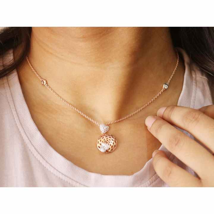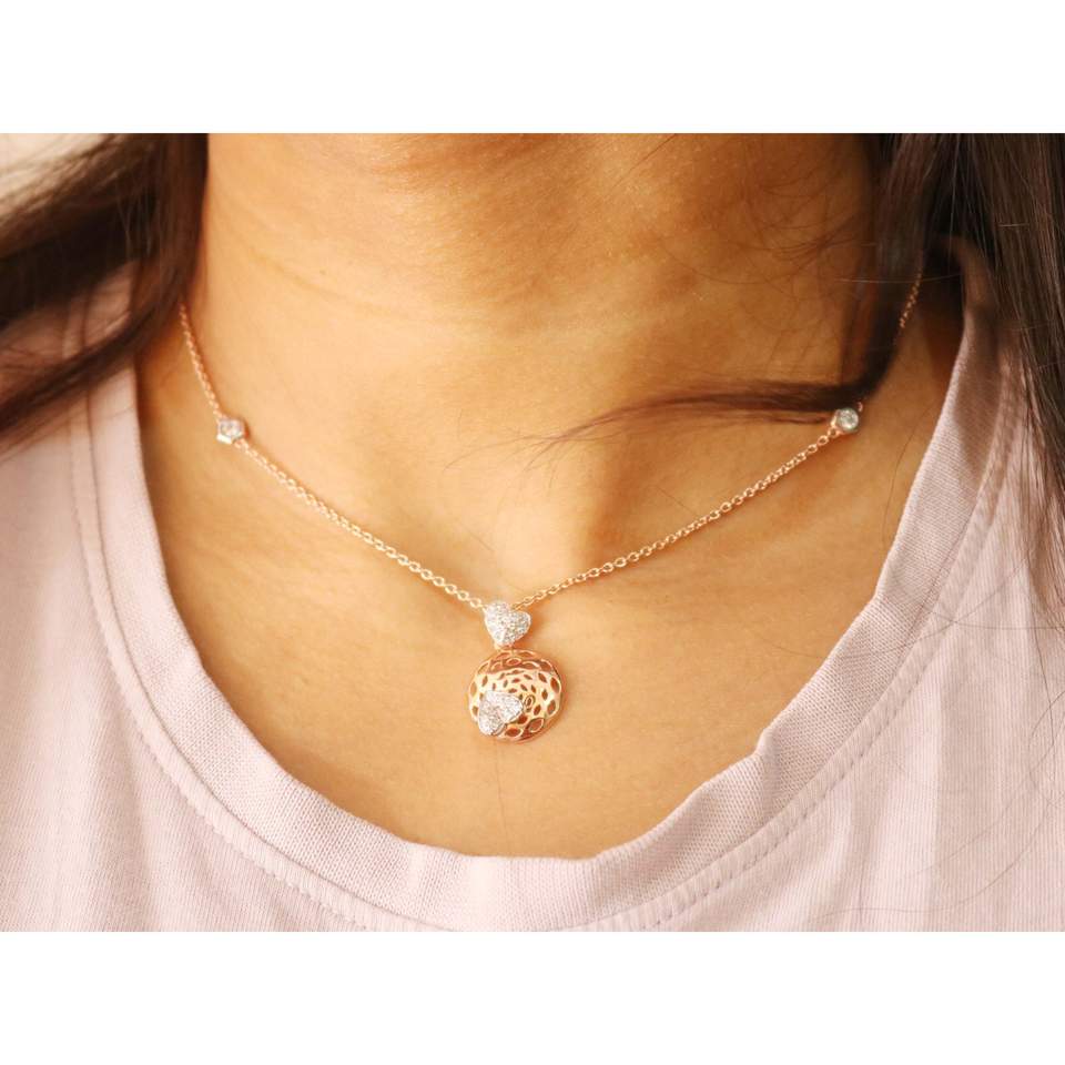 Collier en or rose 14K avec chaîne élégante en forme de cœur en diamant naturel pour femme
