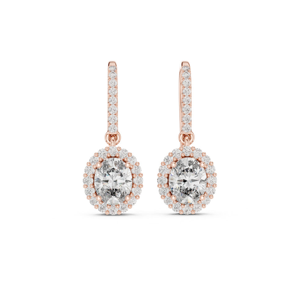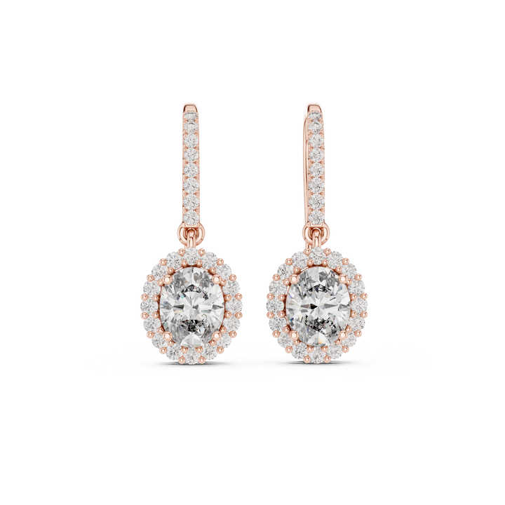 Boucles d'oreilles de luxe pour femmes en or rose 14 carats avec diamant ovale cultivé en laboratoire de 1,29 carat certifié IGI | Nouveau diamant cultivé
