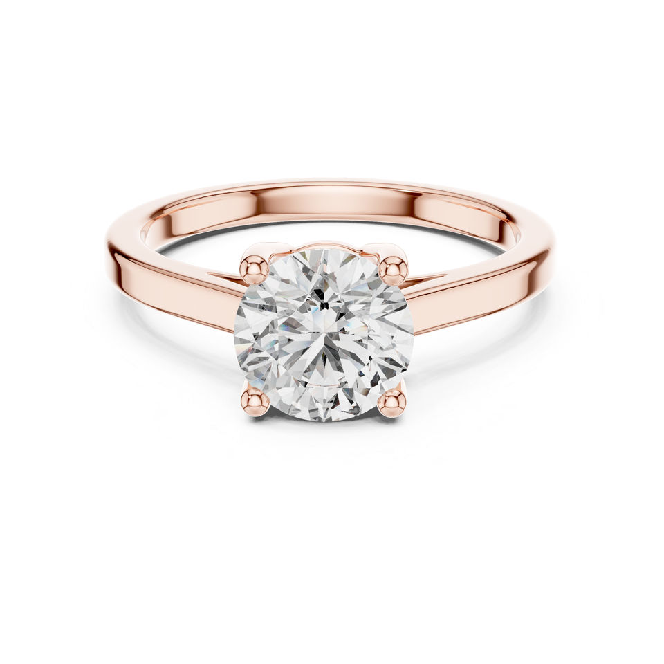 Bague en or rose 14 carats avec diamant rond de laboratoire pour femmes | Anneau de tenue de bureau | Nouveau diamant cultivé