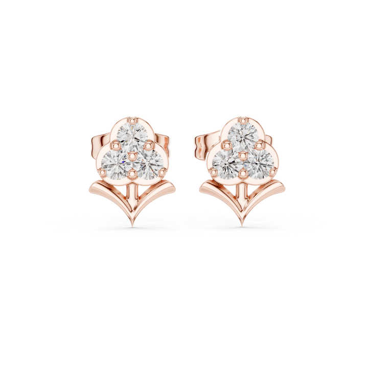 Boucles d'oreilles de fiançailles en or rose 14 carats avec diamant rond cultivé en laboratoire pour femmes | Nouveau diamant cultivé 0,3 ct certifié IGI Luxe