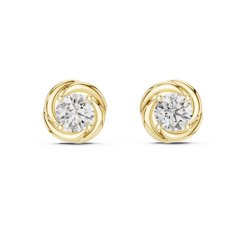 Boucles d'oreilles clous en or jaune 14 carats avec motif tourbillon et moissanite taille brillant, bijoux fins modernes et minimalistes pour femme, idéales pour anniversaire ou soirée