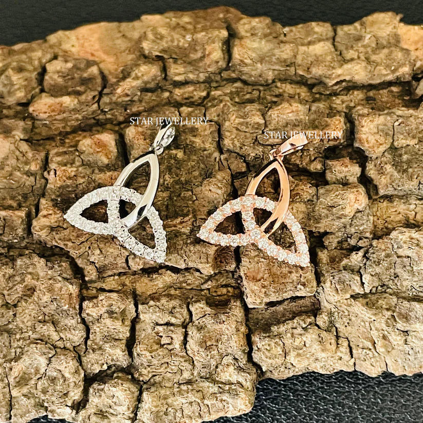 14K Solid Gold 0.14 Ct Natural Diamond Celtic-Inspired Trinity Pendant Fine Jewelry.
