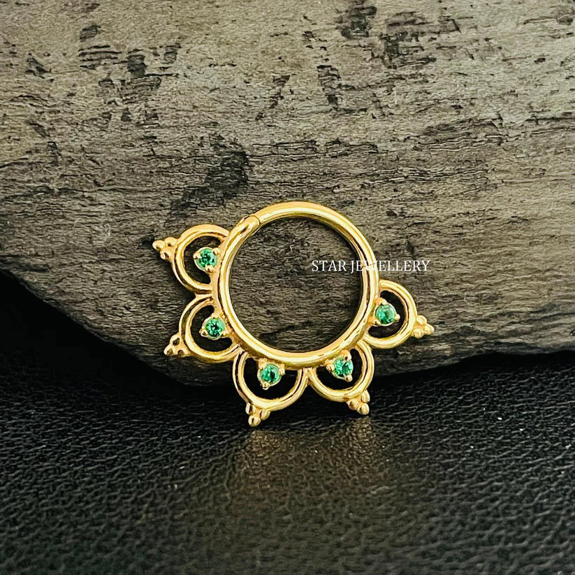14K Or Massif CZ Vert Diamant Daith Piercing Fine Jewelry.
