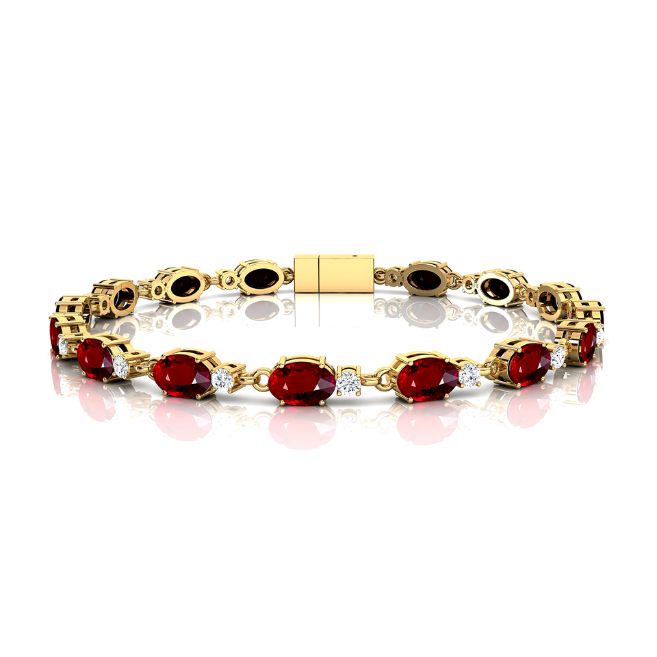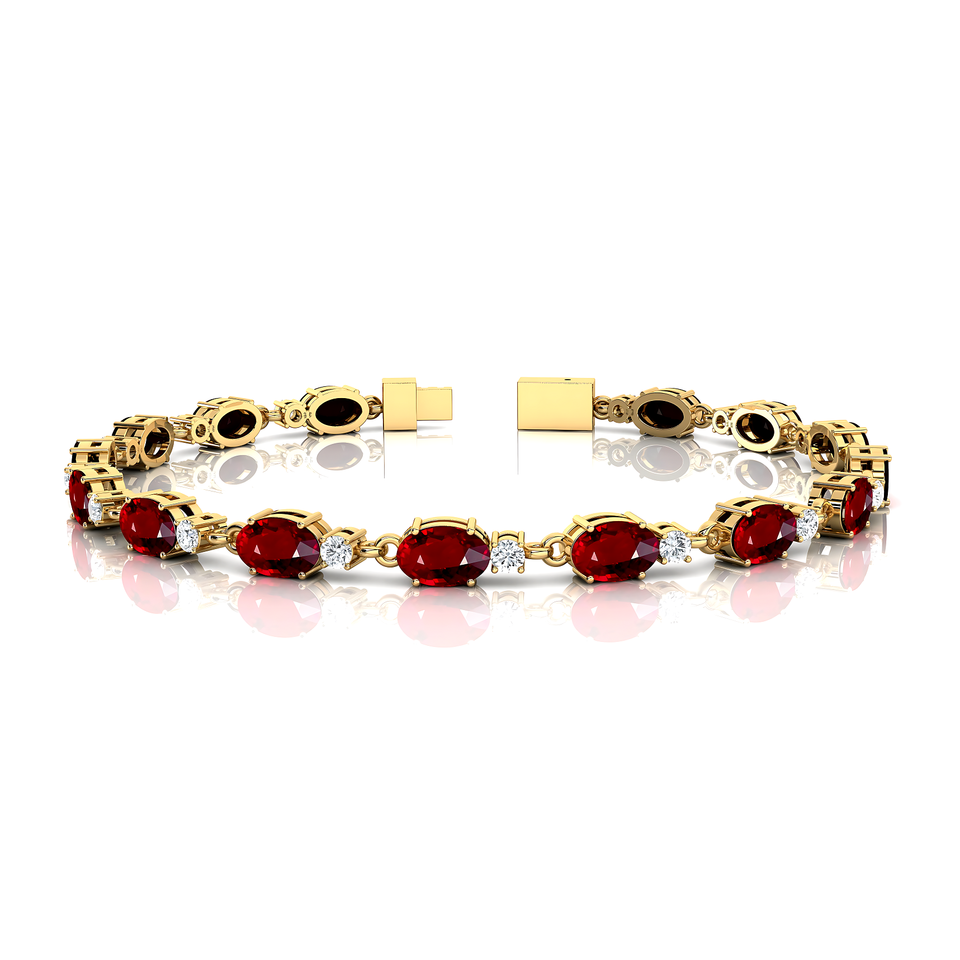 14K Or Massif Personnaliser Prong Réglage Naturel Rubis & Diamant Tennis Chaîne Bracelet pour Femmes De Luxe Saint Valentin Cadeau Bracelet