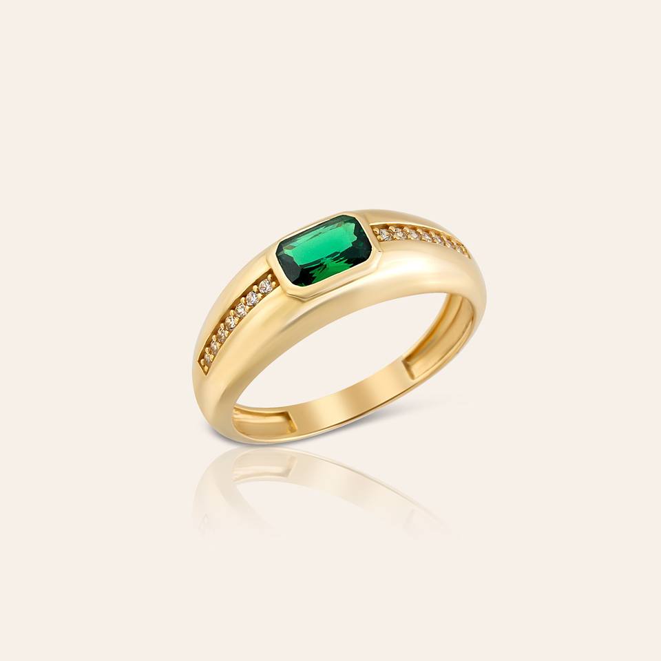 14K Or Massif Diamant Émeraude Pierre Précieuse Prong Set Baguette Cut Classique Alliance Minimaliste Bague Empilable Naturel Mai Fête