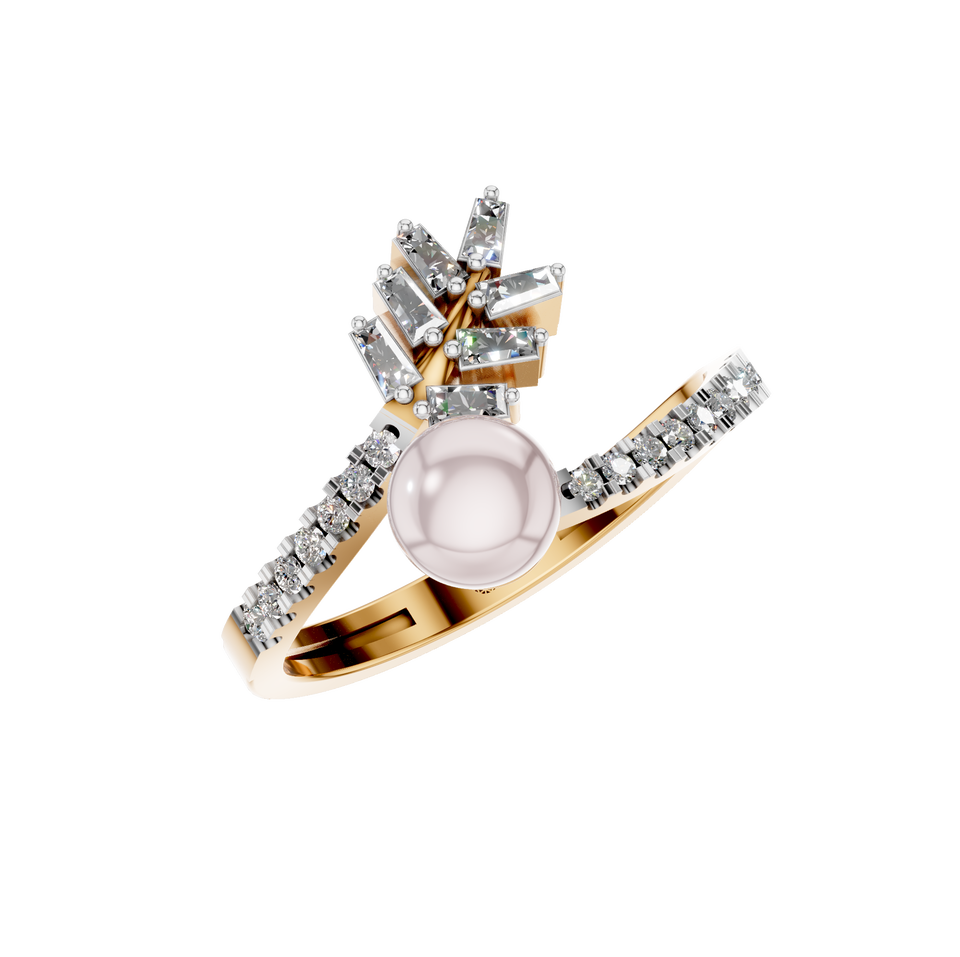 Style:Cocktail Diamond Ring Natural Pearl gemstone