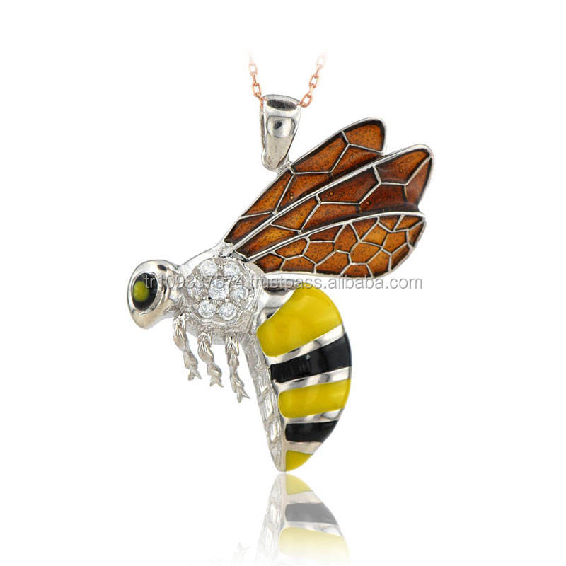 Collier pendentif abeille en émail or massif, mm, 14K, breloque