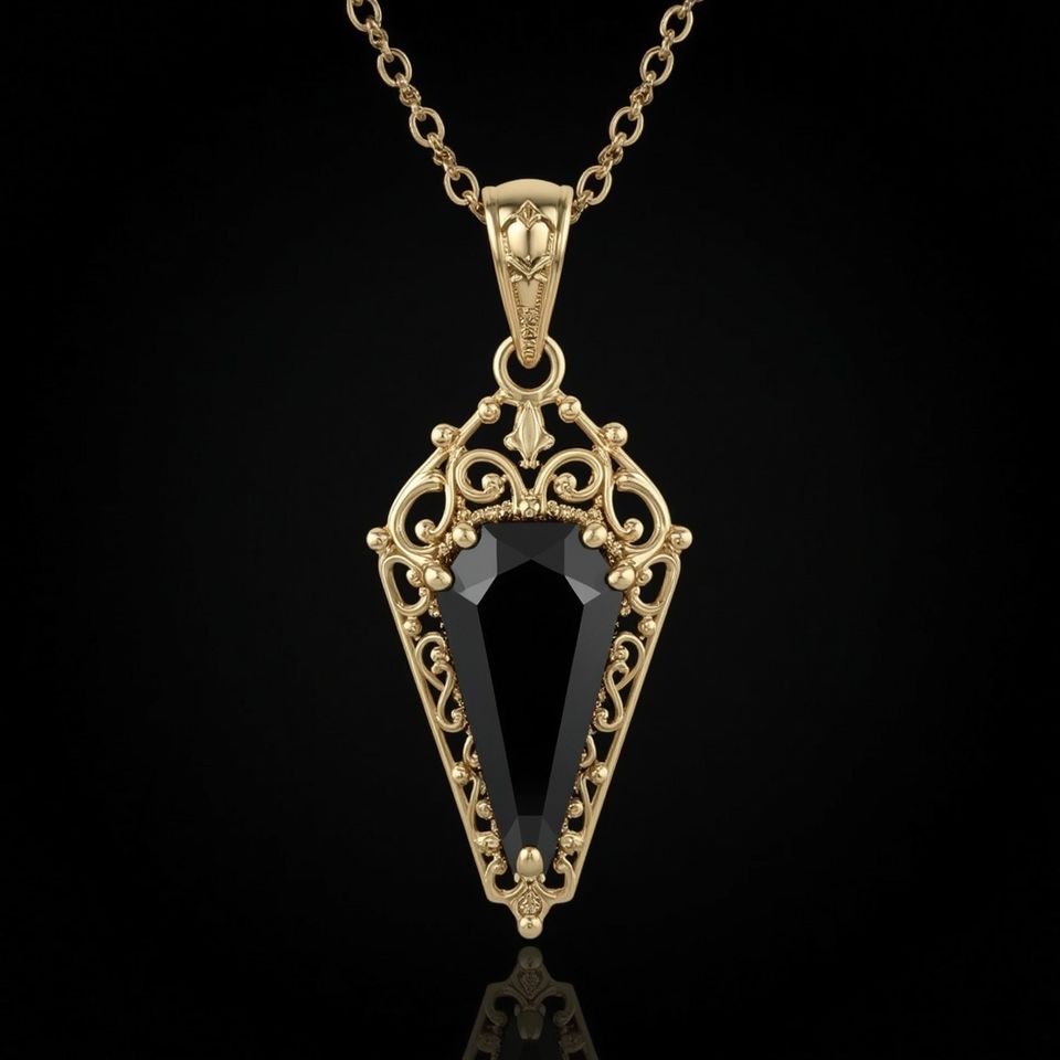 Pendentif gothique en or massif 14 carats avec diamant noir coupe cercueil 9x7mm bijoux fins pour femmes