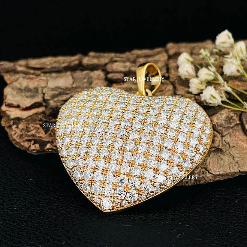 Pendentif en forme de cœur gonflé en or massif 14 carats avec diamant de laboratoire cultivé pour femmes, bijoux fins de luxe