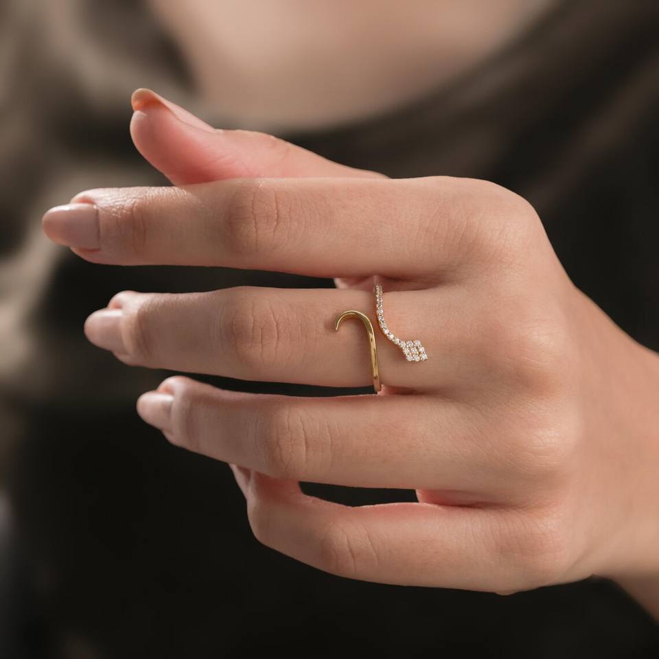 Nom du produit:Bague serpent enveloppante ronde en or 14 carats avec diamants, bague ouverte modulable