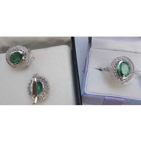 Boucles d'oreilles et bague de style vintage en perles en or massif 14 carats avec émeraude comme pierre principale
