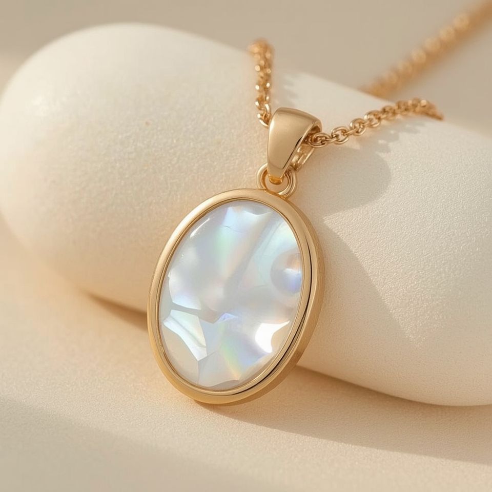 14K Solid Gold Mother of Pearl Charms Necklace White Gold Color Party Jewelry for Women OEM/ODM