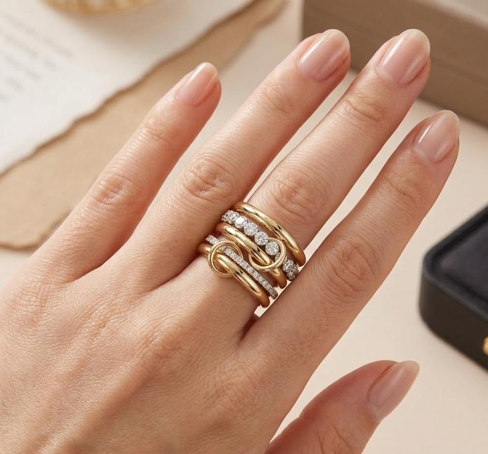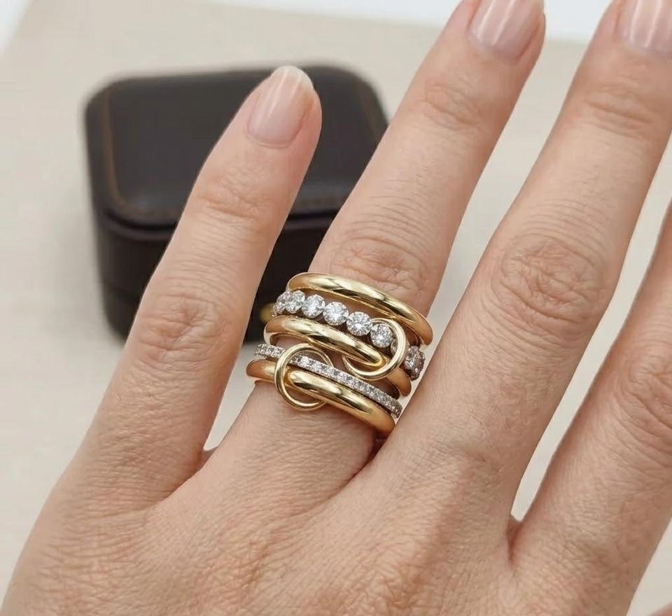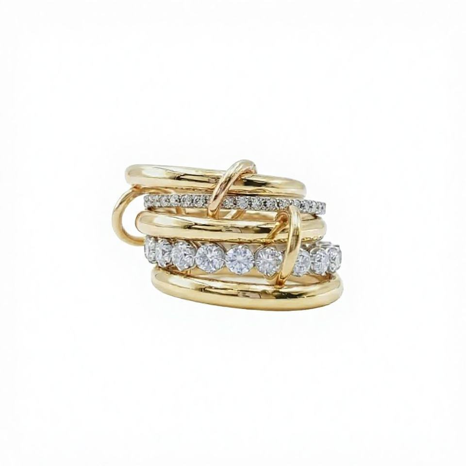 Bague d'éternité multi-liens en or massif 14 carats, bicolore, avec connecteur rotatif en diamant de laboratoire entrelacé pour femme