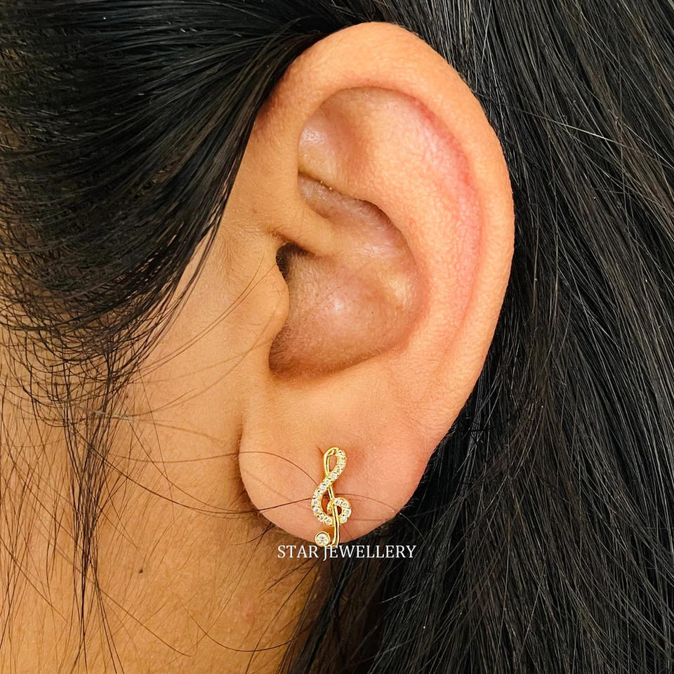 Boucle d'oreille Note de musique en diamant naturel en or massif 14 carats.