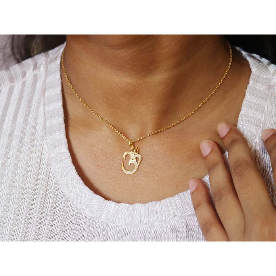 Collier symbole Om en or massif 14K avec pendentif en diamant Charme sonore de l'univers