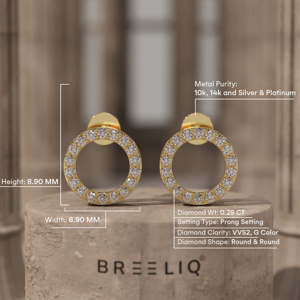 Boucles d'oreilles clous en or massif 14 carats avec diamants ronds, sertis pavé, design créoles ouvertes, bijoux fins élégants pour femmes