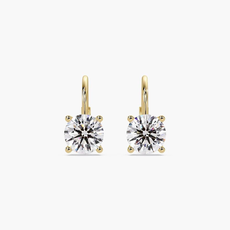 Boucles d'oreilles pendantes à fermoir levier en or massif 14K avec diamant de laboratoire rond 1 carat, bijoux fins pour femme, cadeau de fête