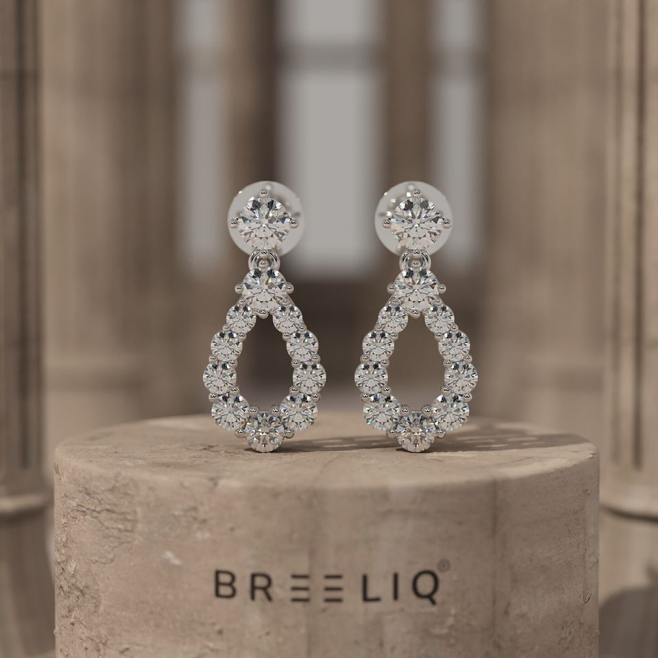 Boucles d'oreilles pendantes élégantes en or massif 14 carats avec diamants ronds en forme de goutte d'eau, bijoux fins pour mariage, cadeau de luxe pour femme