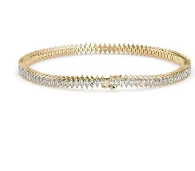 14K Solid Gold Tennis Bracelet With Lab Grown Marquise Cut Solitaire Moissanite Anniversary Gift for Her-Bridal Bangle