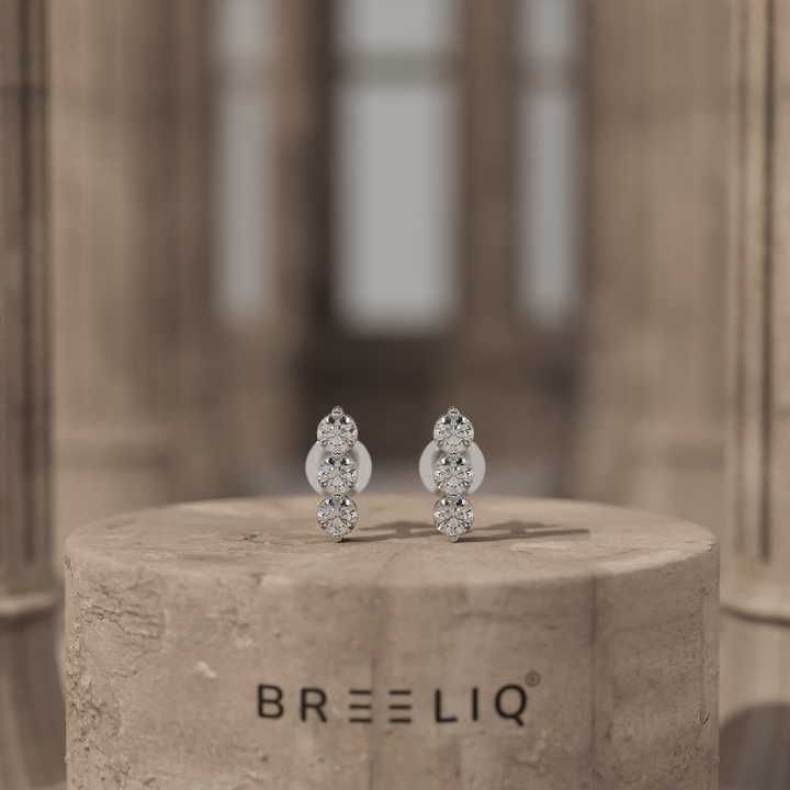 Boucles d'oreilles clous en or massif 14 carats avec trois diamants de laboratoire ronds, design vertical minimaliste, bijoux fins pour femme, élégantes pour le quotidien