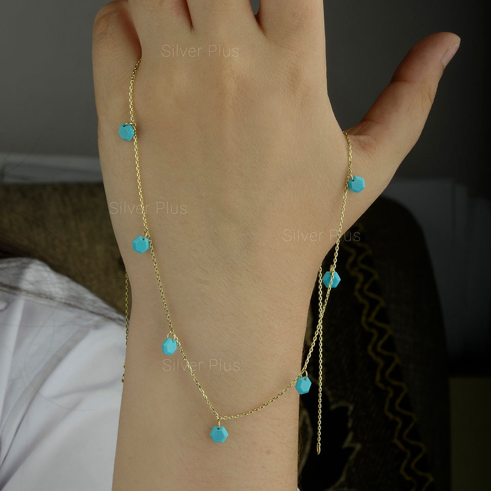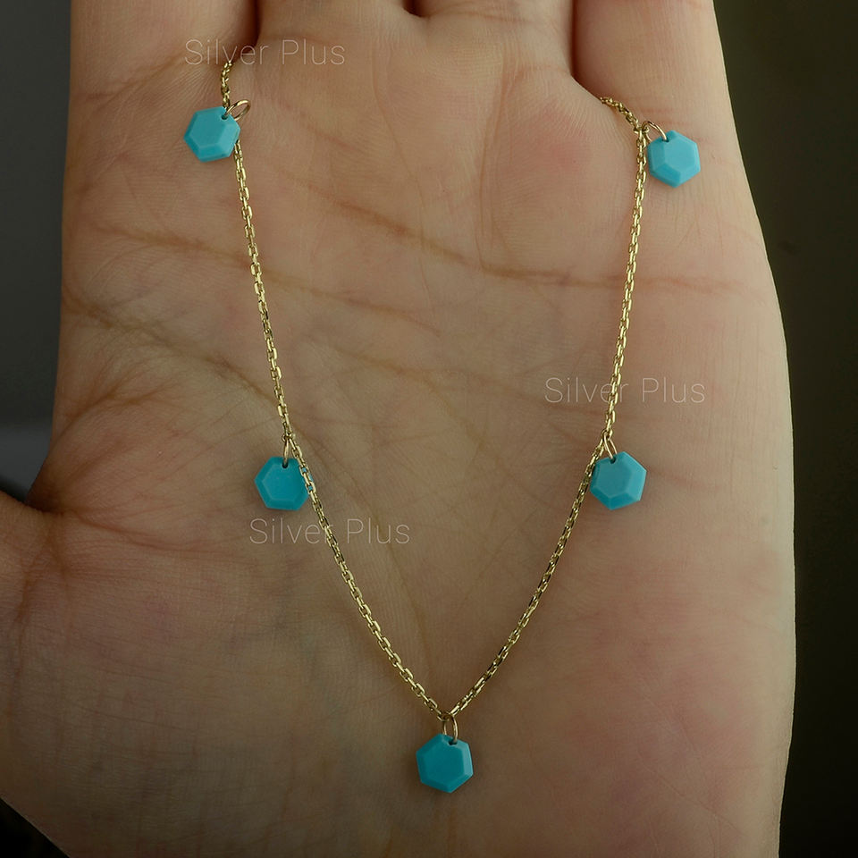 14K Solid Gold Turquoise Diamond Necklace Minimalist Jewelry Chain Necklace Jewelry Manufacturer