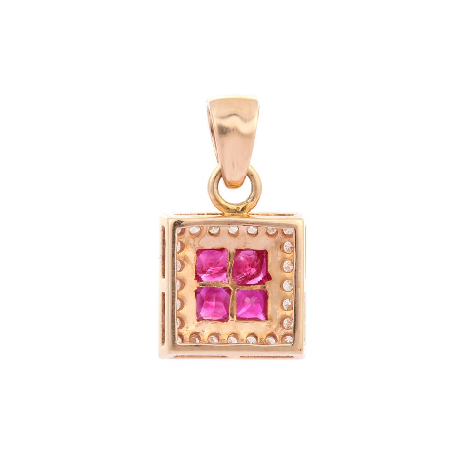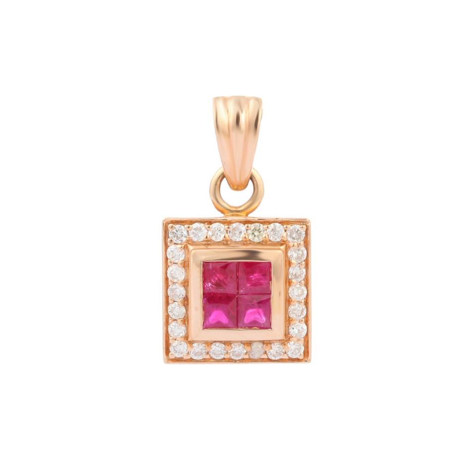 14K solide or Rose diamant pendentif classique naturel précieux rubis carré pierre précieuse lunette réglage mariage fiançailles bijoux pour