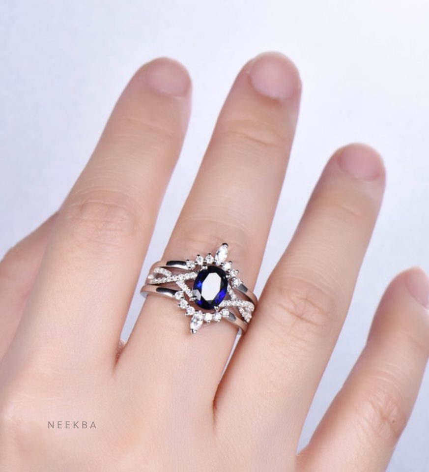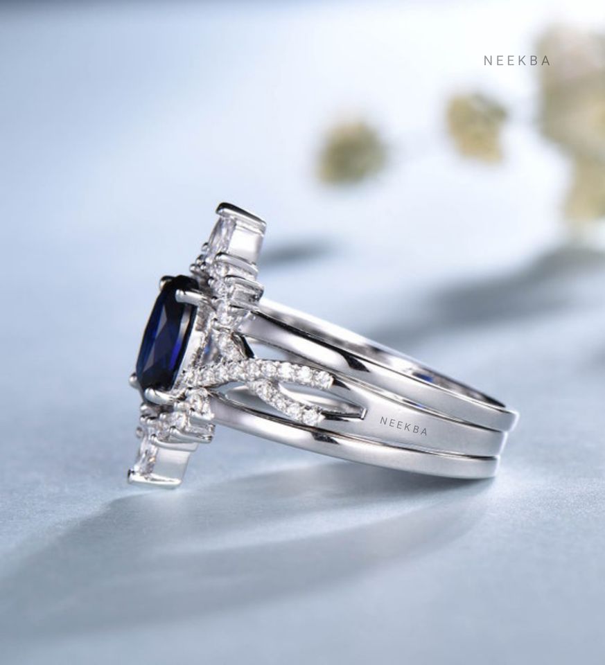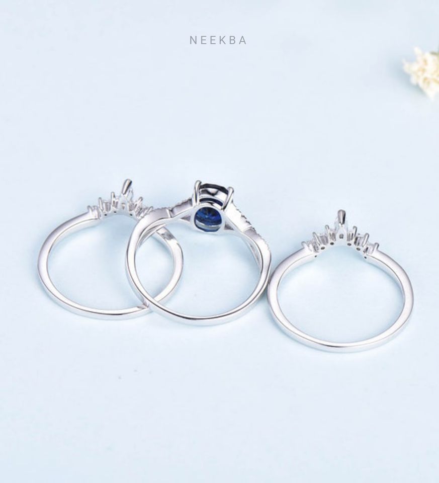 Ensemble de bague de mariage saphir bleuType d'anneaux
