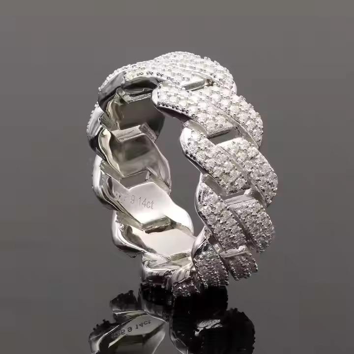 Bague de mariage en or blanc massif 14K 10mm Original Moissanite Diamond Monaco Cuban Link Ring en argent et plaqué rhodium pour femme