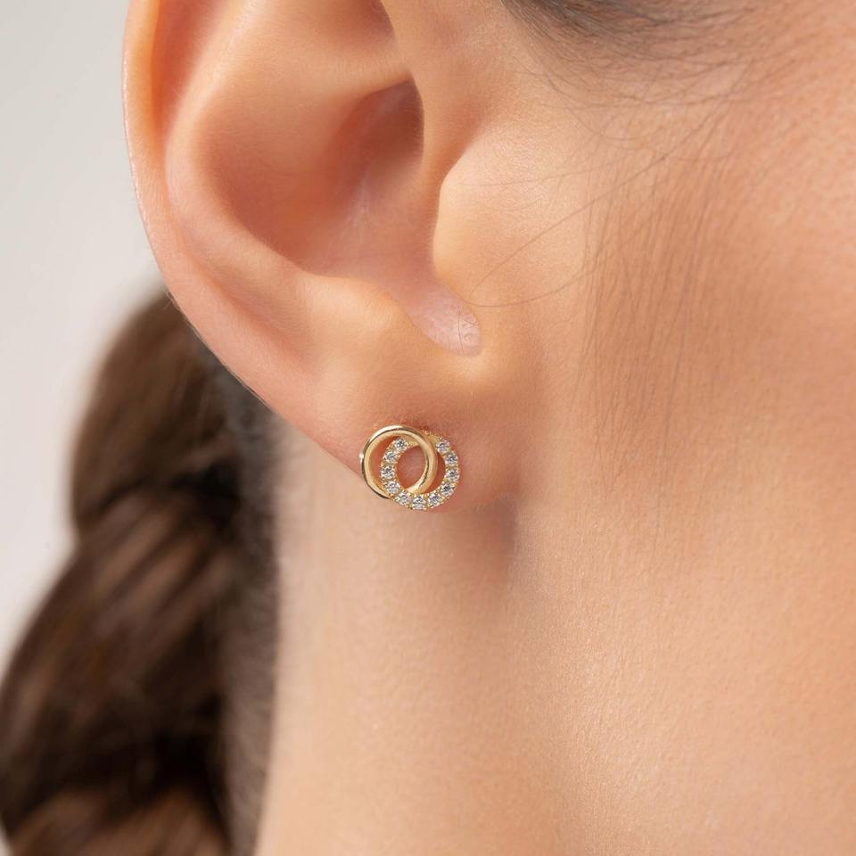 Boucles d'oreilles clous cercle en or jaune massif 14 carats avec diamants de laboratoire, design entrelacé, minimalistes et élégantes, bijoux de mariage, cadeau pour femme