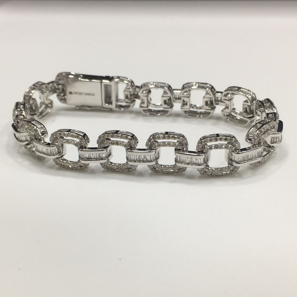 Bracelet à maillons de tennis de style hip hop en or blanc 14 carats Design unique avec de vrais diamants ronds Baguette Bracelets et bracelets en diamant